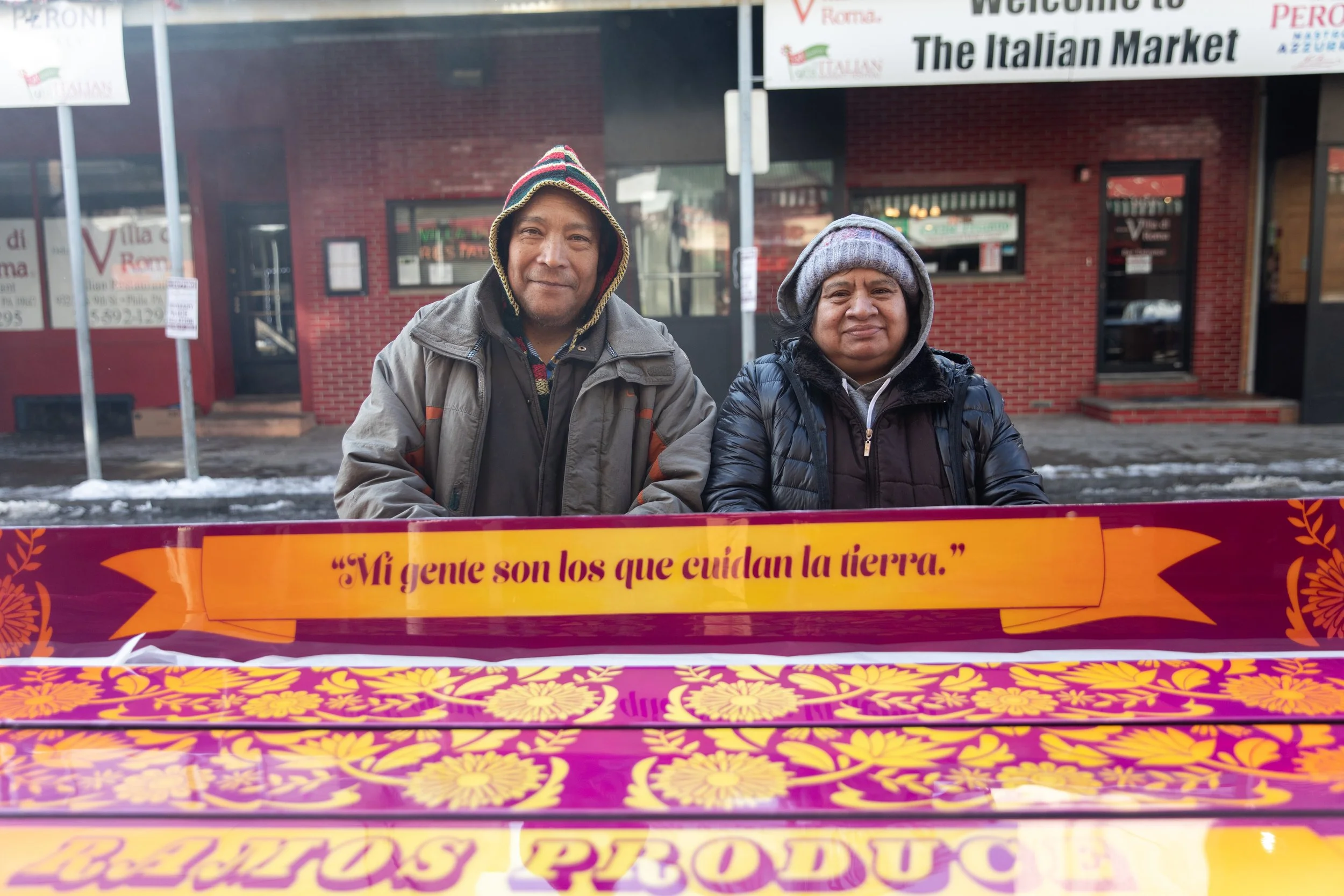 Lidia Méndez y Joel Ramos are from Puebla and arrived to the Market twelve years ago. Lidia worked in El Mercado Sonora in Mexico selling medicinal herbs. Both Lidia and Joel remember cultivating the land in Mexico. They continue their traditions here in our city to support their families. The colors and patterns on their stand are inspired by the festivities of their community in San Lucas.